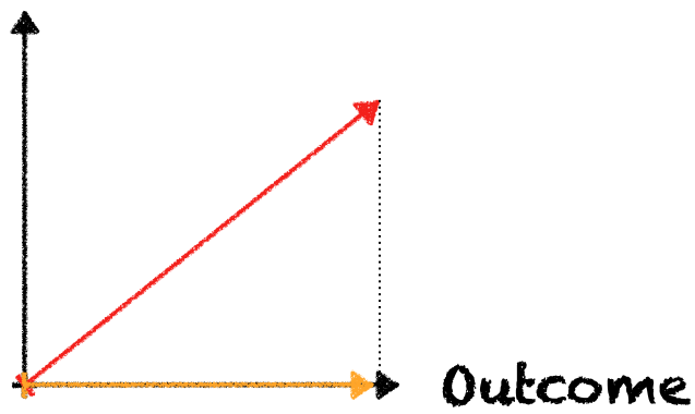 I’ll share a shameful secret with you. At first, when I started drawing the diagram, the one-dimensional version, I thought of expressing effort or output, rather than outcome. Actually, in my mind, it’s not even relevant: you’ve reached a better outcome with less output? Good for you! I might even be jealous.