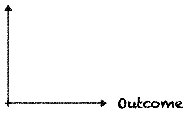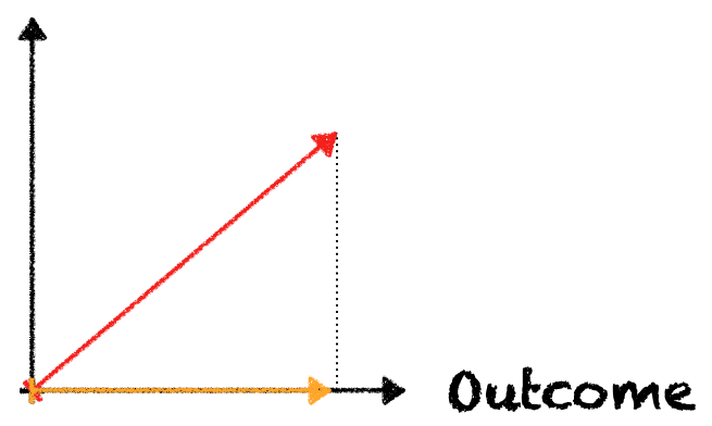 I’ll share a shameful secret with you. At first, when I started drawing the diagram, the one-dimensional version, I thought of expressing effort or output, rather than outcome. Actually, in my mind, it’s not even relevant: you’ve reached a better outcome with less output? Good for you! I might even be jealous.