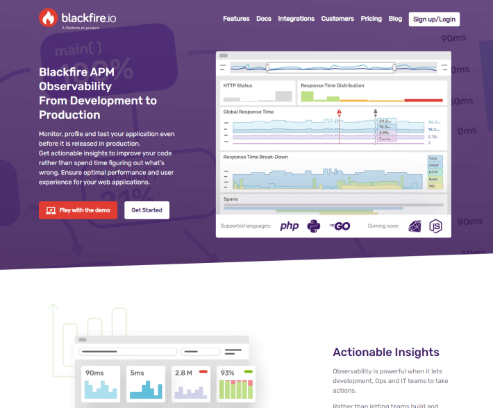 53% of users abandon a website that takes more than 3 seconds to load, according to Google. But you can’t optimize what you can’t measure. Blackfire gives developers all the tools they need to measure, understand and optimize how their code consumes server resources. From development, to testing pipeline and production, it provides actionable insights with a deep comprehension of the underlying technology, from a Magento shop to a Drupal, Django, WordPress, or vanilla Symfony site.